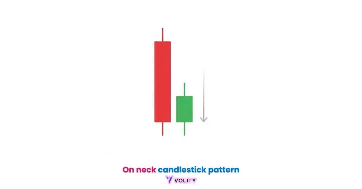 The On-Neck Candlestick Pattern begins with a long bearish candle, often with a substantial real body, confirming the existing downtrend. This first candle represents strong selling pressure. The second candle is a smaller bullish candle that opens with a gap down, indicating initial bearish momentum. However, buyers step in, pushing the price up, but its closing price remains near the previous low of the first bearish candle. This indicates a temporary bullish push that ultimately faces strong resistance.