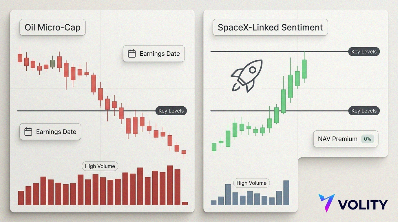 - In both names, volume is the signal, since these moves can reverse without warning on thin liquidity.