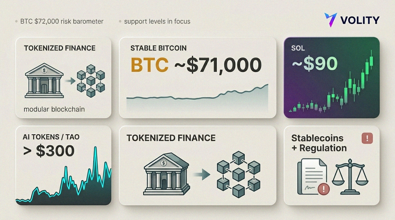Crypto caught a bid on Tuesday, as traders chased two familiar stories with a new sheen: AI tokens and tokenised finance. Meanwhile, a flare of US-Iran tension jolted oil and risk assets, therefore pushing intraday correlations into a blender. Bitcoin held near $71,000 as altcoins did the sprinting, and Solana reclaimed $90 on upgrade chatter and thick volumes.