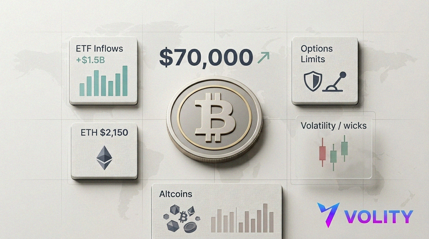 - Trade the level: $70,000 in BTC is the line that decides risk-on versus fade rallies.