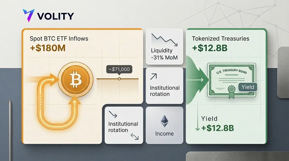 The market does not look broadly bearish. Instead, it looks selective and slightly more grown up. Bitcoin is being treated like a strategic holding, not a daily trading chip. Meanwhile, on chain Treasuries are swallowing the “institutional allocation” headlines, because they fit risk committees neatly. Therefore BTC can see inflows without fireworks, because the marginal buyer is less excitable.