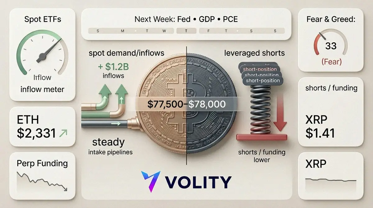 Next week brings the sort of macro run that can overpower positioning: the Federal Reserve meeting, US GDP, and PCE inflation. If rates volatility jumps, crypto usually stops pretending it is uncorrelated.