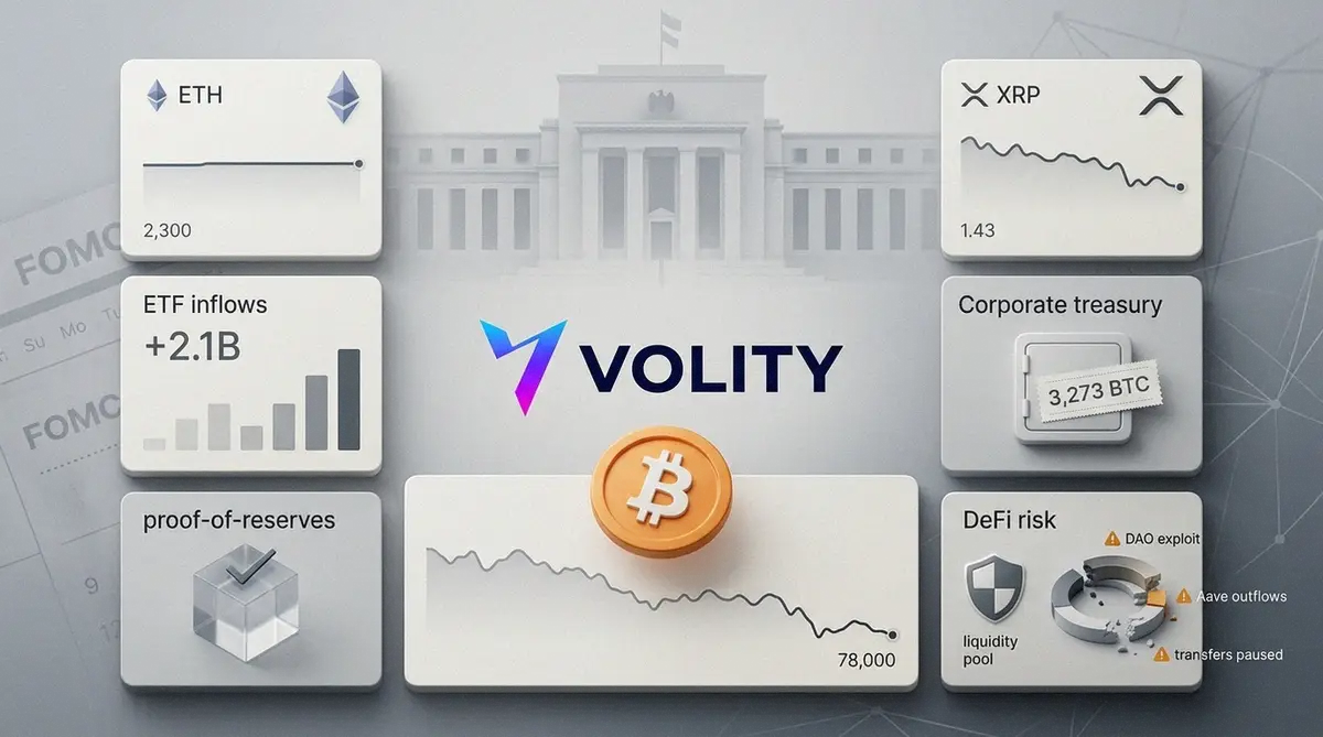 Crypto caught a risk-off draught on Monday, with traders choosing caution over conviction ahead of the next Federal Open Market Committee meeting. Bitcoin hovered around $78,000 after failing near $78,700, while Ethereum clung to $2,300 and XRP weakened around $1.43. Therefore, the tape felt less like a breakout and more like a market waiting for permission.