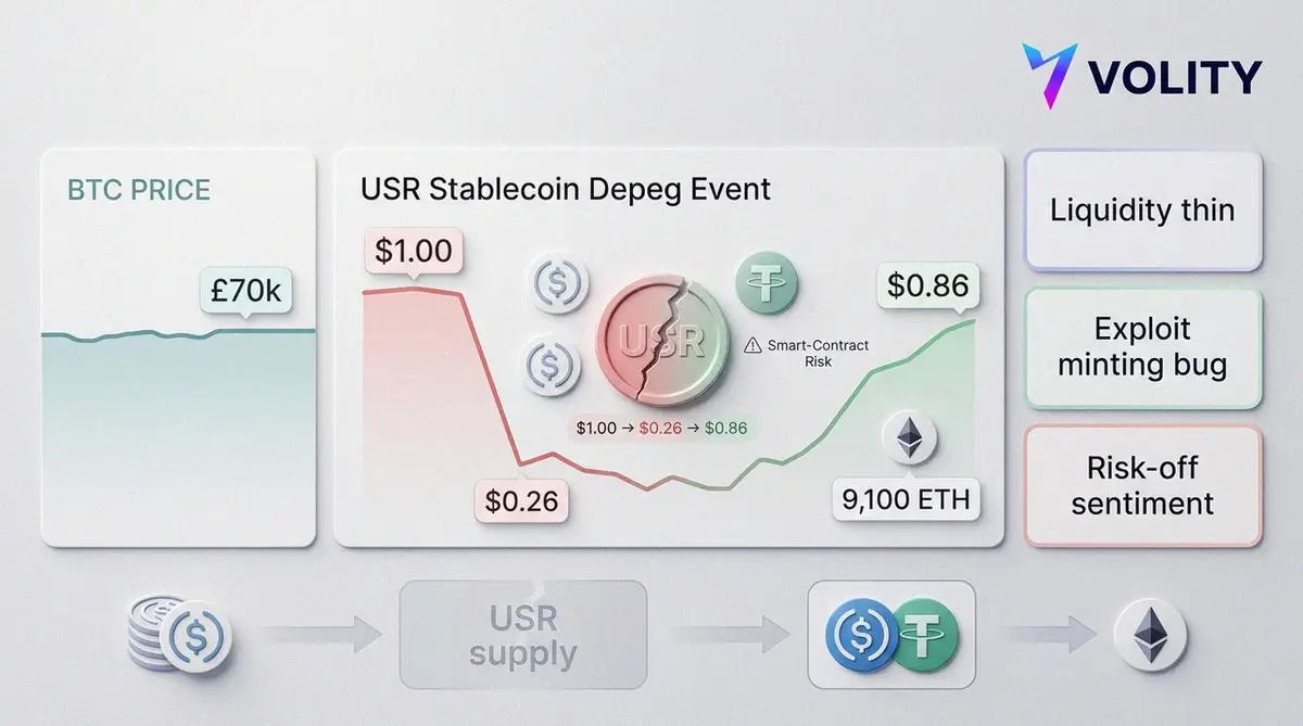 - Track the attacker wallet. Further USR selling could spill into correlated DeFi names via liquidity stress.
